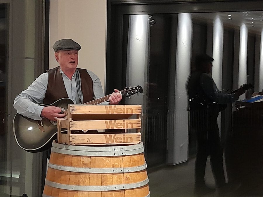 Ein geselliger Abend in der Alten Kelter, wo unter Anleitung der Herren Walter und Walter gemeinsam deutsches Liedgut gesungen wird.
